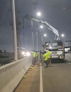 The Municipal Chief Executive (MCE) for Ledzokuku, Israel Adjetey Otchwenmah, has led a team to remove an unauthorised billboard at the Flowerpot Interchange in Accra,